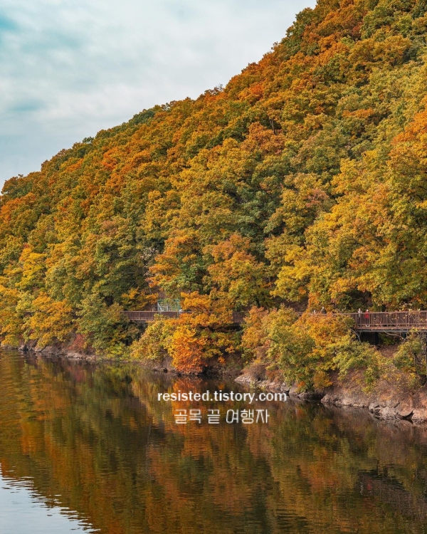 괴산 산막이옛길은 가을이면 단풍이 호수에 반사되어 수채화처럼 퍼지는 장관을 만날 수 있어요. 입장료는 없고, 운영시간은 오전 9시부터 오후 5시까지로 여유롭게 다녀올 수 있으며, 주차도 편하게 가능하답니다. 대부분 데크길이라 걷기 편하고, 10월 중순에서 말 사이가 단풍 절정이라 이 시기엔 자연에 물드는 감동을 온몸으로 느낄 수 있는 가을 충청도 가볼만한곳 베스트 10입니다.