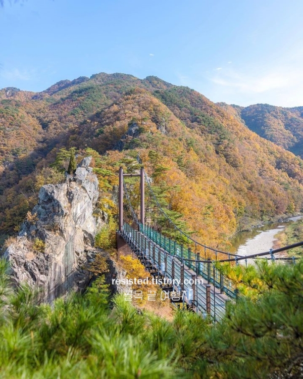 캠핑이나 차박 명소로도 입소문이 자자한 곳인데요, 별이 뜨기 시작하는 저녁이면 바위 능선 뒤로 달빛이 흘러내려 정말 몽환적인 풍경이 연출되고 전망대에서 내려오는 길, 햇살이 암봉 틈 사이로 스며들 때 울컥했습니다. 출렁다리에서 바라보는 물안개 낀 강물 위 단풍 사진은 정말 그림 같았어요. 특히 산책로 중간중간 마련된 쉼터와 벤치에서 소풍처럼 도시락을 즐기거나, 전망대에서 가을 바람을 맞으며 커피 한 잔 마시는 분들도 많더라고요. 걷는 재미, 보는 재미, 쉬는 재미까지 갖춘 가을 충청도 가볼만한곳 베스트 10 코스에서 빠질 수 없는 명소랍니다.