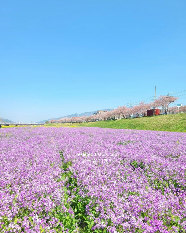 유채꽃이 활짝 피는 시기에는 강변 산책로를 따라 걸으며 꽃을 가까이에서 감상할 수 있고, 곳곳에 쉼터와 전망 공간이 마련되어 있어 잠시 머물며 꽃밭을 내려다보는 것도 좋다. 바람이 불 때마다 노란 꽃들이 흔들리는 모습은 마치 강물 위에 떠 있는 듯한 느낌을 준다. 유채꽃 향연을 즐긴 후에는 양상 가볼만한곳 베스트 10으로 유명한 근처 통도사나 양산타워까지 함께 둘러보자.