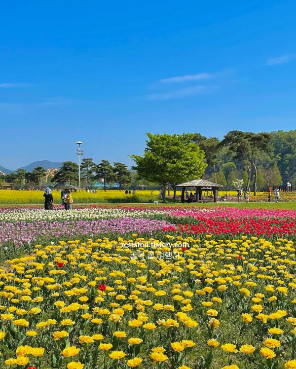 유채꽃과 함께 튤립이 함께 피어 있어 노란 유채밭 사이로 빨강, 주황, 보라색의 튤립이 포인트를 더한다. 튤립은 정원 형태로 조성되어 있어 꽃을 더욱 가까이에서 감상할 수 있으며, 햇살을 받은 꽃잎들이 반짝이며 봄날의 따뜻한 분위기를 만들어준다. 경남 봄에 가볼만한곳 베스트 10으로 또 좋은 우포늪을 방문해 생태 탐방을 하거나, 화왕산을 가볍게 등산하며 창녕 여행코스도 좋다.