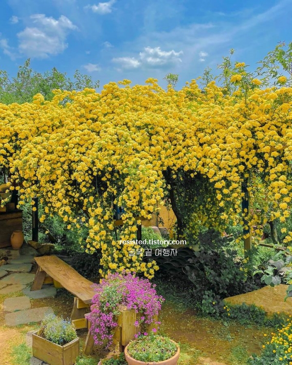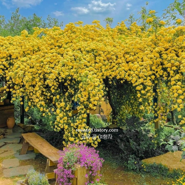 목향장미는 다른 장미보다 키가 크고 가지마다 꽃송이가 풍성하게 피어나기 때문에, 마치 작은 숲처럼 보이기도 한다. 따뜻한 햇살 아래 걷다 보면 장미 향이 은은하게 퍼지며, 강변과 함께 어우러진 풍경이 더욱 운치 있게 다가온다. 하동 최참판댁을 둘러보며 '토지'의 배경이 된 공간을 직접 체험해보거나, 섬진강을 따라 이어진 드라이브 코스를 즐기는 것도 봄 하동 여행코스로 추천한다.