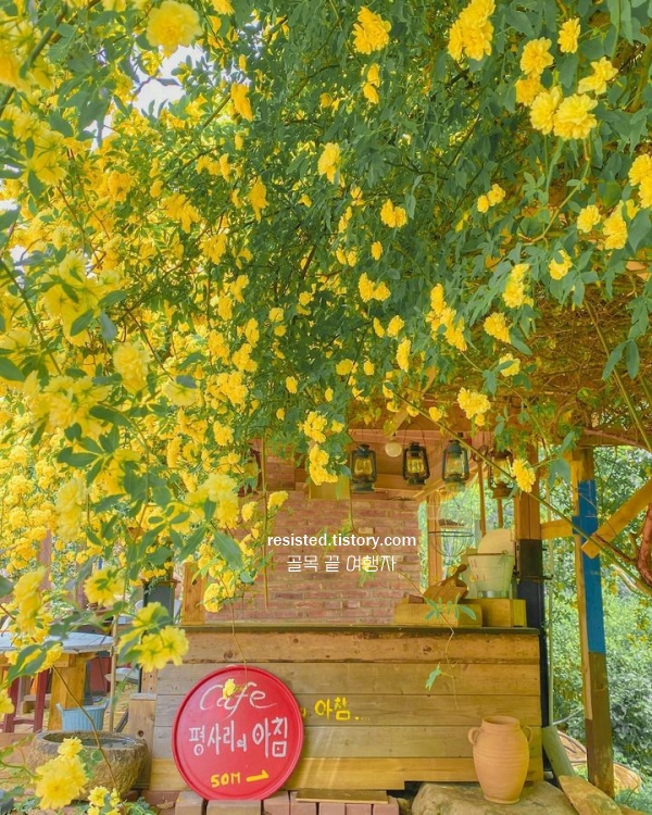 하동 평사리는 소설 '토지'의 배경이 된 곳으로, 넓게 펼쳐진 너른 들판과 초록빛이 가득한 풍경이 조화를 이루는 경남 봄에 가볼만한곳 베스트 10인데 하동에 있는 평사리의 아침 카페는 4월 20일 전후부터 5월 중순까지 목향장미가 피어나며, 붉은빛과 분홍빛의 장미가 길을 따라 자연스럽게 늘어선다. 이 시기에는 인기가 많아서 예약을 해야 갈 수 있다.