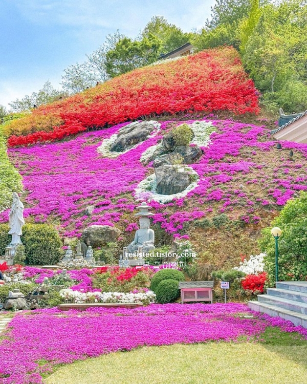 거제 신광사는 봄이면 겹벚꽃이 피어나는 사찰로, 4월 중순부터분홍빛 꽃송이들이 사찰을 감싸는 모습을 볼 수 있다. 일반 벚꽃보다 늦게 피고 꽃잎이 겹겹이 쌓여 있어 더욱 예쁜 경남 봄에 가볼만한곳 베스트 10인데 주변에 유채꽃도 있어서 봄꽃 구경 제대로 할 수 있다. 신광사는 깊은 산속에 자리한 작은 사찰이지만, 그 고요한 분위기와 벚꽃이 어우러지며 아주 예쁜데 사실 경남 겹벚꽃 명소로 아직은 유명하지 않아서 더 좋은 곳이다.