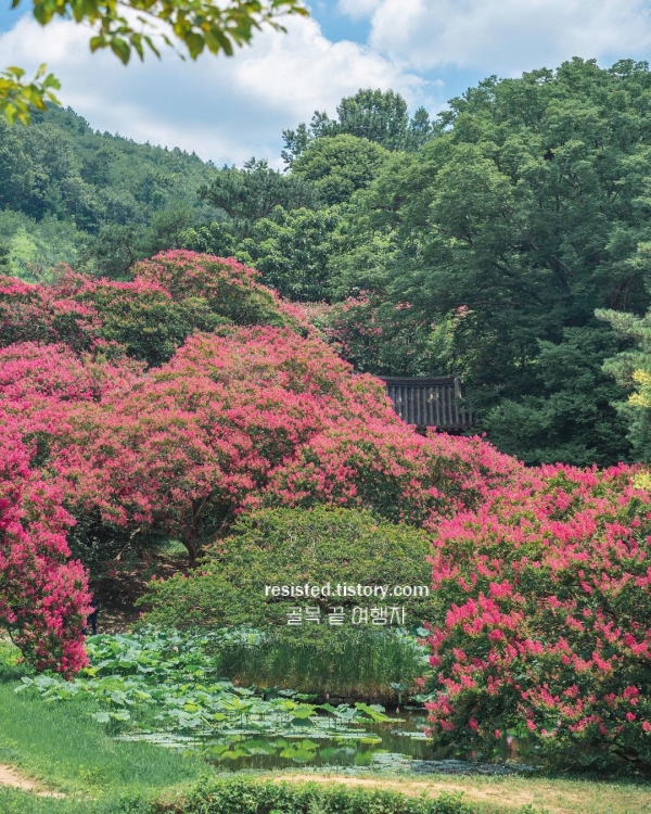 명옥헌 원림의 백일홍은 7월 중순에서 8월 초, 분홍빛 물결이 연못 위에 떠 있다는 말이 딱 맞는 여름 국내여행지 추천입니다. 정문에서 약 700m 흙길을 따라 들어가면 마루와 연못, 그리고 그 위에 그림처럼 펼쳐진 배롱나무 고목들이 기다리고 있어요. 새벽이나 해 질 무렵엔 풀잎마다 이슬 맺히고, 연못 위 꽃잎이 서서히 흘러내리니, 그 순간엔 말이 필요 없죠. 입장료도 주차도 무료라서, 하루 중 움직이지 않아도 괜찮은 ‘조용한 쉼의 시간’을 완성하기 좋더라고요.