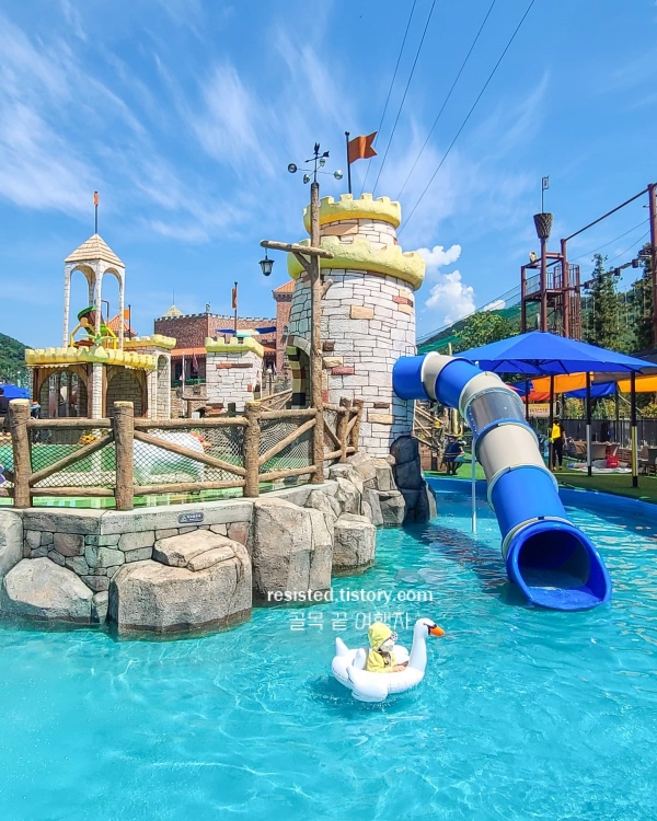 붓처럼 펼쳐진 풀장 주위 잔디밭과 평상들에 돗자리 깔고 있자니, 물놀이가 아니라 하루 속 쉼표를 찍는 기분이라 여유가 찾아왔어요. 11시에서 14시 사이엔 다소 북적이지만, 조용한 평일 아침에 가면 풀장 하나가 마치 내 것처럼 느껴질 정도였고 차가운 물속에 발을 담그면, ‘여름이 이렇게 조용할 수도 있구나’ 싶은 여름 국내여행지 추천이었어요.