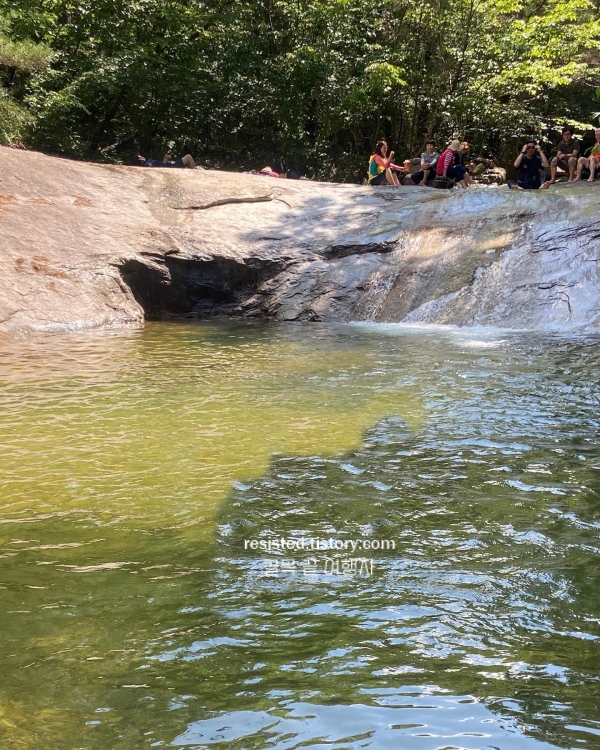 폭포라는 이름에 걸맞게, 물소리가 길게 이어지는 국내 여름 여행지 추천으로 금산 십이폭포는 이름처럼 열두 번이나 계곡 물살이 굽이치며 작은 폭포들을 만들어놓았고, 그 사이사이에 얕은 물웅덩이가 생겨 발 담그고 쉬기 좋았습니다. 마을 초입에 평상과 주차 공간이 마련돼 있고, 도로 끝까지 차량으로 진입 가능해서 접근도 어렵지 않았어요. 물은 허리 정도까지 차오르는 곳도 있었지만 대부분은 아이들도 안전하게 놀 수 있는 깊이였고 바위 위에 앉아 흐르는 물결을 바라보고 있으니, 무겁던 숨결이 조금씩 가벼워집니다.