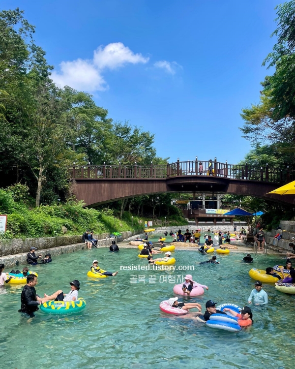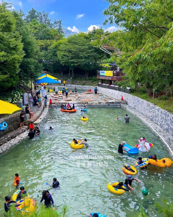 이곳의 진짜 매력은 ‘자연 앞에서 조용히 시간 머무르기’를 허락하는 쉼표 같은 곳이라는 거였어요. 평일 아침엔 물놀이장이 내 것처럼 느껴질 정도로 한적했고, 축제 기간 주말에도 유수풀·워터슬라이드·송어잡기 체험 등 다채로운 여름 이벤트가 계곡과 숲의 조화를 더해줬죠 .