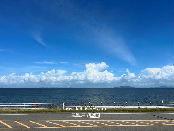길은 매우 길고 직선으로 뻗어 있어서, 중간중간 마련된 휴게소나 전망대를 잠깐 들러 쉬어가는 것도 좋았어요. 주변에 인위적인 구조물은 많지 않아 하늘과 바다, 간척지, 섬들이 차분하게 이어지는 풍경을 오롯이 느낄 수 있었고요. 조용한 시간대를 골라 가면 차량도 많지 않아 군산 바다 가볼만한곳 베스트 10 바다 위를 달리는 듯한 감각을 더 잘 느낄 수 있습니다. 군산을 지나는 일정이라면 드라이브 루트로 한 번쯤 넣어보는 걸 추천하고 싶어지는 길이었습니다.