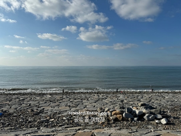주차장은 비교적 넉넉하고, 인근 상가를 이용하면 일정 시간 무료 이용권도 받을 수 있어서 접근성도 괜찮았어요. 해변 자체가 북적이지 않고 깨끗하게 관리되고 있는 편이라 머무는 내내 편안한 느낌이었고요. 짚라인이 바로 앞에 있어 아이들이 지루해하지 않고, 앉아서 구경만 해도 그 자체로 한가로운 시간이 됐습니다.