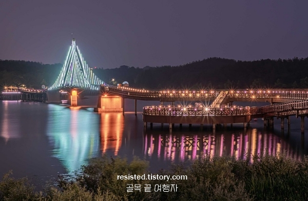 저녁이 되면 물빛다리와 음악분수, 그리고 주변 광장에 조명이 하나둘씩 들어오면서 공원 전체가 조용한 빛의 공간으로 변합니다. 분수쇼는 음악에 맞춰 물줄기가 움직이고 조명이 더해져 야경과 함께 어우러지는데, 일부러 시간을 맞춰 둘러볼 만큼 매력이 있었어요. 봄에는 벚꽃으로, 여름에는 시원한 바람과 분수로, 계절마다 풍경이 달라지는 점도 좋았고요.