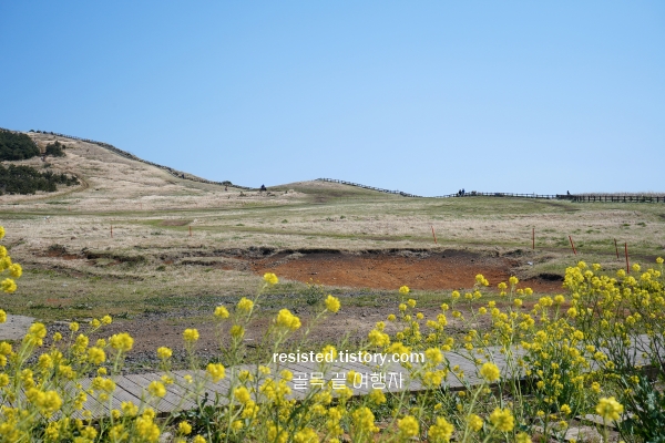3월 제주도 2박3일 여행코스 추천 섯알오름에 들러 노란 유채꽃이 펼쳐진 초원을 바라봅니다. 이곳에서는 제주의 자연이 그대로 남아 있는 듯한 느낌이 듭니다.