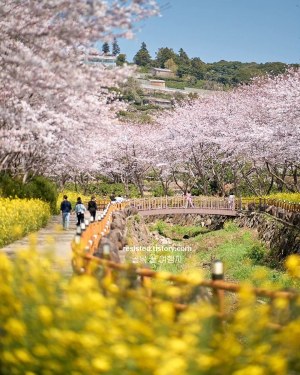 ✅ 남쪽 (서귀포·중문) →약천사 유채꽃 & 벚꽃, 예래생태공원 벚꽃 & 유채꽃 (3월 말 개화), 상효원 수목원 튤립
