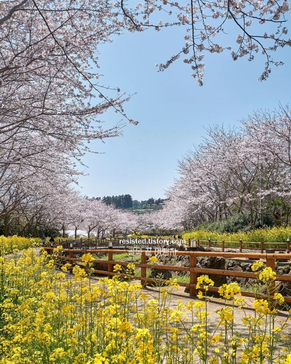 ✅ 서쪽 (애월·협재·서남부) →애월 장전리 왕벚꽃, 용머리해안, 섯알오름 유채꽃, 송악산 둘레길 유채꽃 (3월에도 유채꽃이 피어 있음)