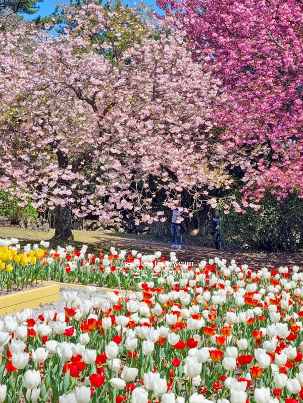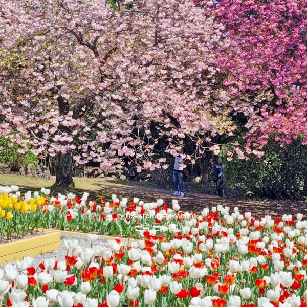 3월 서귀포 가볼만한곳 베스트 10 상효원 수목원으로 향합니다. 벚꽃뿐만 아니라 튤립도 함께 만날 수 있습니다. 알록달록한 튤립이 정원 곳곳에서 피어나며 봄을 한층 더 화려하게 만들어 줍니다. 오늘 하루는 벚꽃과 튤립이 가득한 길을 따라 걸으며, 제주에서의 봄을 제대로 느낀 날이 아닐까 싶습니다.
