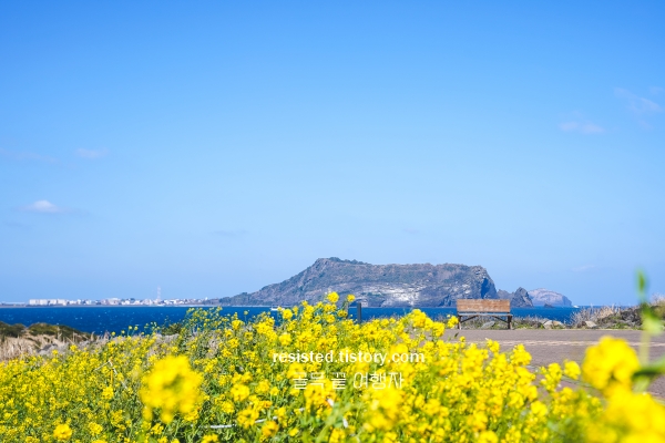 🔹 광치기 해변 – 성산일출봉과 어우러진 유채꽃밭