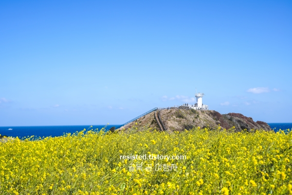3월 제주도 2박3일 여행코스 추천 광치기 해변에 도착하자, 파란 바다와 함께 성산일출봉이 눈앞에 펼쳐집니다. 바람이 불어오는 방향을 따라 걷다 보면, 노랗게 물든 유채꽃들이 해변을 감싸듯 피어 있습니다. 유채꽃 사이로 길을 내어 걷다 보면, 발걸음이 한결 가벼워집니다. 섭지코지로 이동해 푸른 바다를 배경으로 서 있는 등대까지 걸어가면, 멀리서도 유채꽃이 가득한 들판이 보입니다.