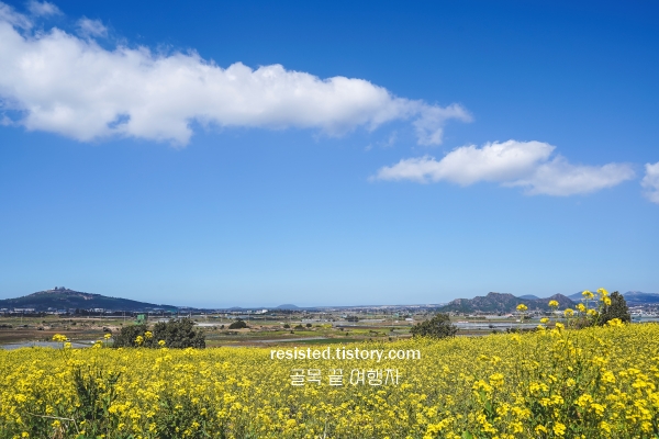 3월 제주도 2박3일 여행코스 추천 섯알오름에 들러 노란 유채꽃이 펼쳐진 초원을 바라봅니다. 이곳에서는 제주의 자연이 그대로 남아 있는 듯한 느낌이 듭니다.