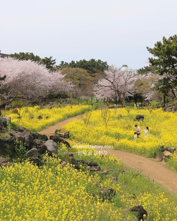 ✅ 남쪽 (서귀포·중문) →약천사 유채꽃 & 벚꽃, 예래생태공원 벚꽃 & 유채꽃 (3월 말 개화), 상효원 수목원 튤립