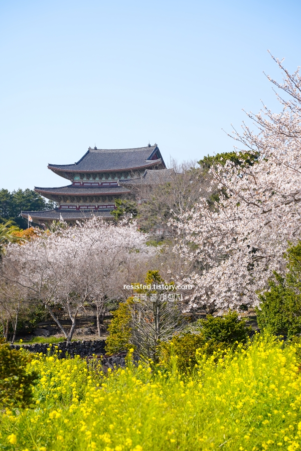 벚꽃을 따라 걸으며 제주의 봄을 더 깊이 느껴보는 날입니다. 먼저 3월 제주 여행 2박3일추천코스 제주 민속촌에 들러 오래된 돌담길을 따라 걷습니다. 정겨운 제주식 초가집과 어우러진 유채꽃이 아름다운 분위기를 만들어내고 있습니다.