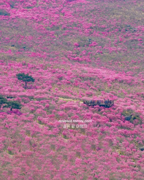 꽃잎이 무겁게 피어 있어 나무 아래가 그늘처럼 느껴질 때가 있다. 오르막길 끝에서 잠깐 숨을 돌리면, 아래로는 도심 풍경이 펼쳐지고 위로는 진달래 군락이 이어진다. 산책처럼 가볍게 시작했던 걸음이 어느새 봄의 중심까지 닿아 있게 된다.