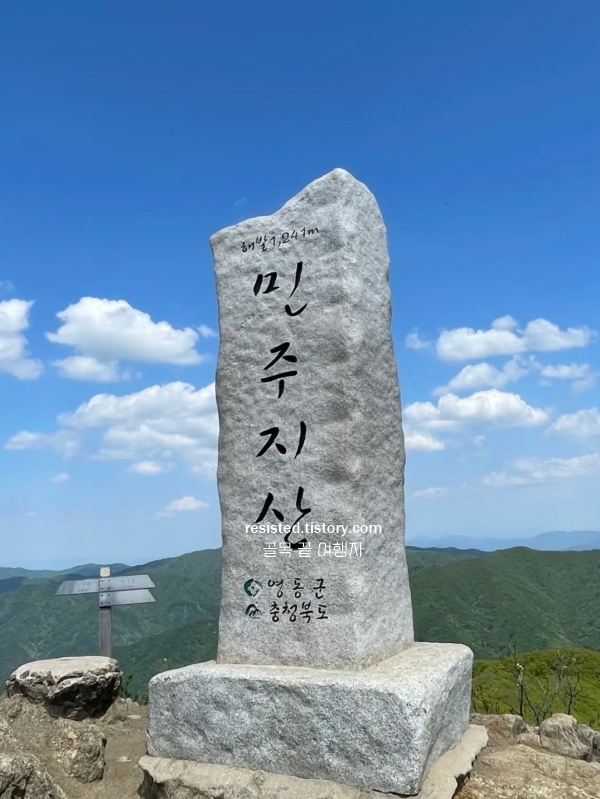 경로: 천마골 입구 → 민주지산 삼거리 → 민주지산 정상 (석기봉) → 민주지산 삼거리 → 천마골 입구