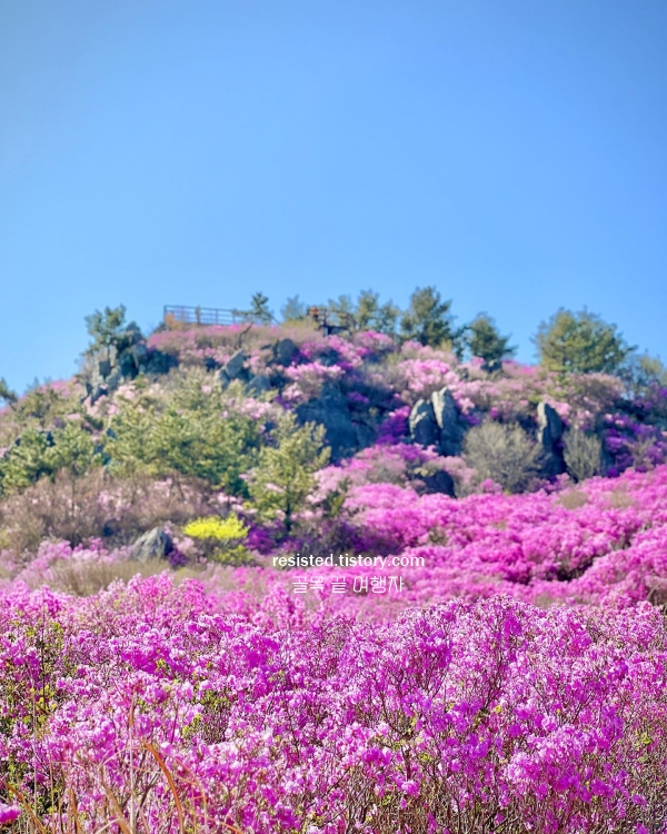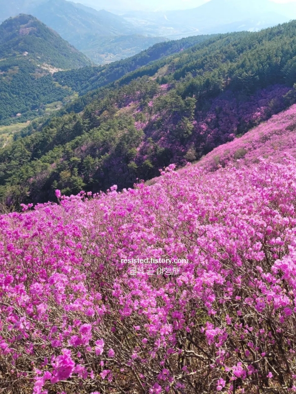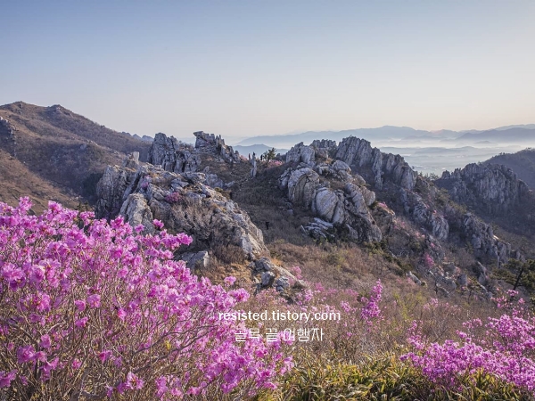 경남 4월 산행하기 좋은 곳 진달래 군락지는 비교적 정돈된 모습이라 걷기에도 부담이 없다. 바람이 통과하는 자리에 잠시 서 있으면, 꽃향기 대신 햇살이 먼저 스며든다. 꽃 속에 들어온다기보다는 꽃 위를 걷는 기분이 드는 산행지다.
