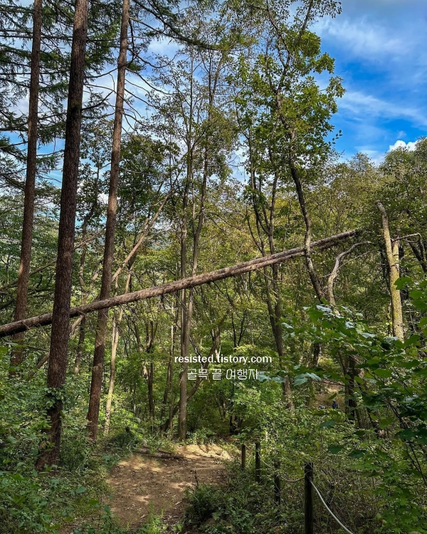 특징: 완만한 경사의 임도를 따라 오르는 코스로, 초보자도 비교적 쉽게 오를 수 있다.
