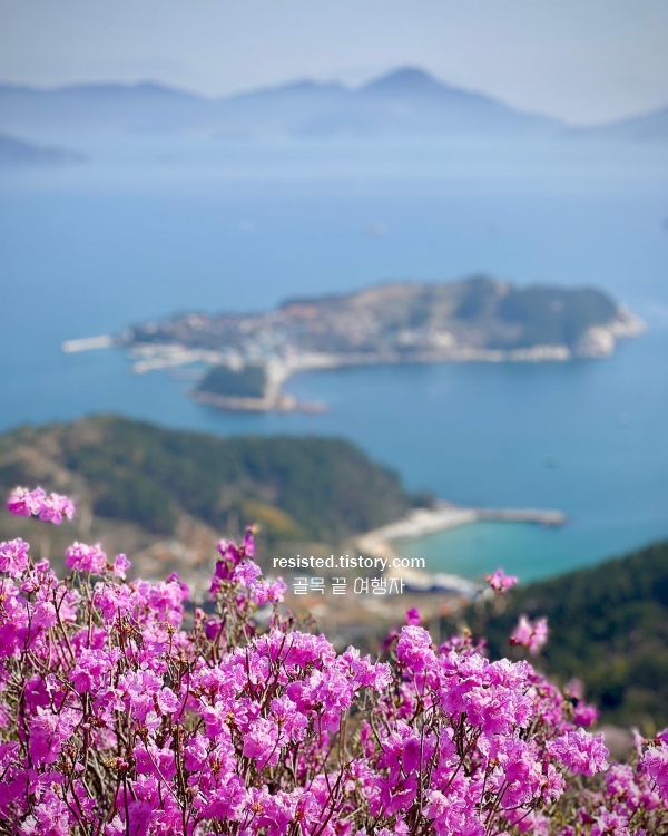 오르막길 끝자락에서 뒤를 돌아보면, 바다 위로 섬들이 흩뿌려진 풍경 사이로 진달래가 퍼져 있는 모습이 보인다. 산과 바다, 꽃과 바람이 동시에 어우러지는 풍경은 쉽게 잊히지 않는다. 땀을 닦고 정상에 앉아 바라보는 이 조합은, 말 없이도 마음을 채워준다.