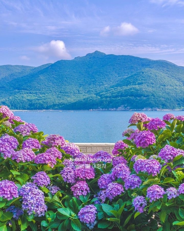거제 저구항 수국동산은 6월 중순부터 바닷바람에 맞춰 수국이 피기 시작한다. 언덕을 따라 길게 조성된 수국길은 주로 파란 계열이고, 그 배경은 당연하게도 바다다. 길 옆에는 포토존처럼 보이는 대형 의자랑 전화박스 같은 설치물이 놓여 있는데, 입장료는 없고, 주차는 근처 공영주차장에 하면 된다. 전체를 둘러보는 데 한 시간 남짓이면 충분하지만, 해안산책로랑 연결돼 있어서 수국 보고 바다까지 함께 걷는 사람이 많다.