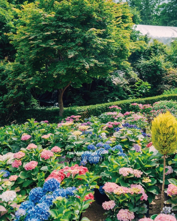 경기도 광주 퇴촌 쪽은 서울에서 멀지 않지만, 식물원이라기보다는 동네 언덕 위 정원 같고, 눈에 먼저 들어오는 건 풍경보다 수국이다. 색은 분홍과 보라 사이에 머물고, 꽃들 사이엔 돗자리랑 가족 단위 피크닉이 어지럽게 섞여 있다. 공간 자체는 복잡하지 않다. 토마토 체험장, 작은 동물 우리, 썰매 레일, 수국 산책로. 방향감각 없이도 다 돌아볼 수 있고, 체감 소요시간은 2시간이면 딱이다.